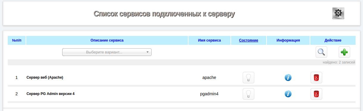 1. Добавляем сервер apache в списке сервисов подключенных к серверу pgadmin4.